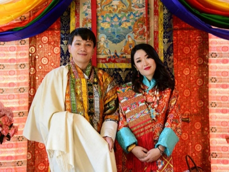 また、ブータンの伝統衣装には社会的地位を示す象徴的な要素も含まれています。その一つが「カブネ」と呼ばれるスカーフで、これは人の左肩に掛けられ、色によってその人の社会的な役割や地位を表します。たとえば、貴族や高僧などの地位の高い人々は黄色のスカーフを身に着けることが許されています。この黄色は権威や尊敬を象徴する色とされており、特別な存在であることを示します。一方で、一般市民は白いスカーフを使用します。この白は純粋さや平等を表しており、ブータンの社会における庶民の立場を示すものとされています。