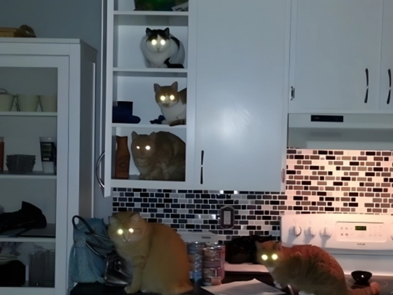 この写真は、猫の協力性と創意工夫の驚くべき展示の中で、猫の行動に関する私たちの知識に疑問を投げかける瞬間を捉えています。猫は通常、独立心としばしば孤独な行動で知られていますが、これらの特定の猫は、高い棚に保管されている禁止された食品にアクセスするという共通の目標の探求において驚くべき協力を示しました。猫たちは一緒に、生きた梯子としか呼ぶことができないものを作ります、身体的な敏捷性だけでなく、問題解決能力も示しています。カメラによって時が止まったように、発見の瞬間は、綿密に計画された強盗のさまざまな段階にある数匹の猫を示しています。彼らの感情は、発見されたときの驚きと集団的な後悔を組み合わせたものです。この出来事は、食べ物への欲求が猫の食欲をどのように克服するかを示しているため、特に重要です。通常は個人主義的な傾向があり、その結果、驚くべき連携と洗練された協力技術が生まれます。