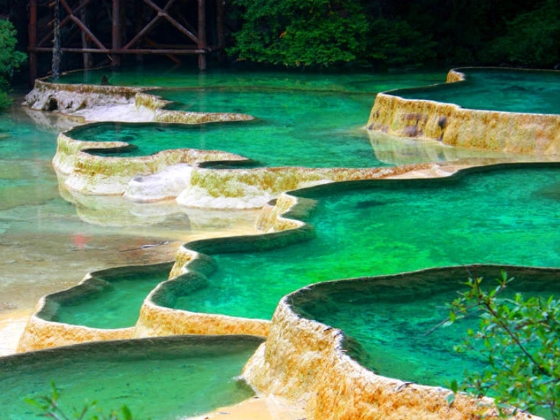 6 月は、黄龍に理想的な気温と最大限の生物多様性を特徴とする初夏の素晴らしさをもたらします。周囲の牧草地と森林が豊かな植物のタペストリーを作り出し、このシーンは最高の緑の強度に達します。この時期、日光がより多く浸透することで天然の鉱物の色が改善されるため、トラバーチンのプールは最も鮮やかな色になります。美しい環境に動きと生命を与えるさまざまな蝶や昆虫が訪問者の目に見えます。気温が適度であるためトレッキングや観光がより楽しくなりますが、日照時間が長いため探検や写真撮影の機会が増えます。雪を頂いた山々が 7 月の空に素晴らしい背景を提供しているため、さまざまな写真の可能性があります。地元の植物が満開です。多くの種類の高山植物が渓谷のいたるところで鮮やかな花を咲かせます。