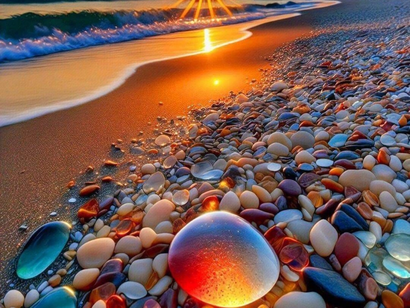 年月が経つにつれ、波がこれらの廃棄物を少しずつ削り、磨き上げていきました。特にガラスの破片は、波や砂によって角が丸くなり、美しい光沢を持つ小石のような姿へと変化しました。こうして自然の力によって生まれ変わったガラスの破片が、現在のガラスビーチを彩る独特の風景を作り上げています。海岸全体に散りばめられた色とりどりのガラス片は、太陽の光を受けてキラキラと輝き、訪れる人々に驚きと感動を与えます。