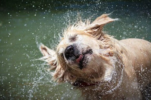 犬が体を振る際には、頭から始まり、首、胴体、そして尾へと順番に振動が伝わる仕組みになっています。この動きによって、全身に付着した水分を効率よく飛ばすことができるのです。犬にとってはごく自然な行動ですが、周囲にいる人にとっては少々困る場面もあるかもしれません。例えば、犬が水から上がった直後に飼い主や他の人の近くで体を振ると、その水しぶきが周りに飛び散ってしまうことがあります。