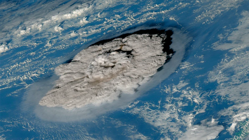 激しく噴火を続ける火山の姿を上空から見下ろせば、人間の想像を絶する迫力に圧倒されるでしょう。この写真が捉えた火山からは、地球の内部から吐き出されたエネルギーと物質が直線的に放出されており、どこまでも上昇し続けるその脅威に背筋が凍りつきます。火山灰の巨大な雲が空高く舞い上がり、まるで天を貫くかのようです。火口から吹き上げられる高温の火山ガスと、それに伴う煙が幾重にも重なり、延々と続く不気味な渦巻きを形成しています。この火山活動の規模の大きさに唖然とせざるを得ません。人類の及ばぬ大自然の威力を前に、我々の存在の儚さを痛感せずにはいられないでしょう。