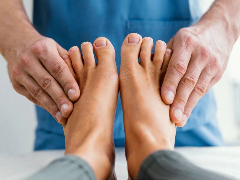 ヒールを履いていると、足の指の付け根に圧力がかかるため、この部分はマッサージではかなり重要です。親指を使って、柔らかい円を描くようにストロークし、足指の付け根から土踏まずに向かって徐々に圧力を加えていきます。特に中足骨領域は、ハイヒールに関連する痛みのほとんどが発生する場所です。小さな円を描くように動かし、圧力レベルを意識しながら、指の関節を使ってこの領域の深部組織マッサージを行います。このアプローチにより、足底への血流が増加します。各足の指を前後にゆっくりとドラッグするストレッチ動作は、硬くなった組織を伸ばし、足の前部に柔軟性を与えるのに役立ちます。