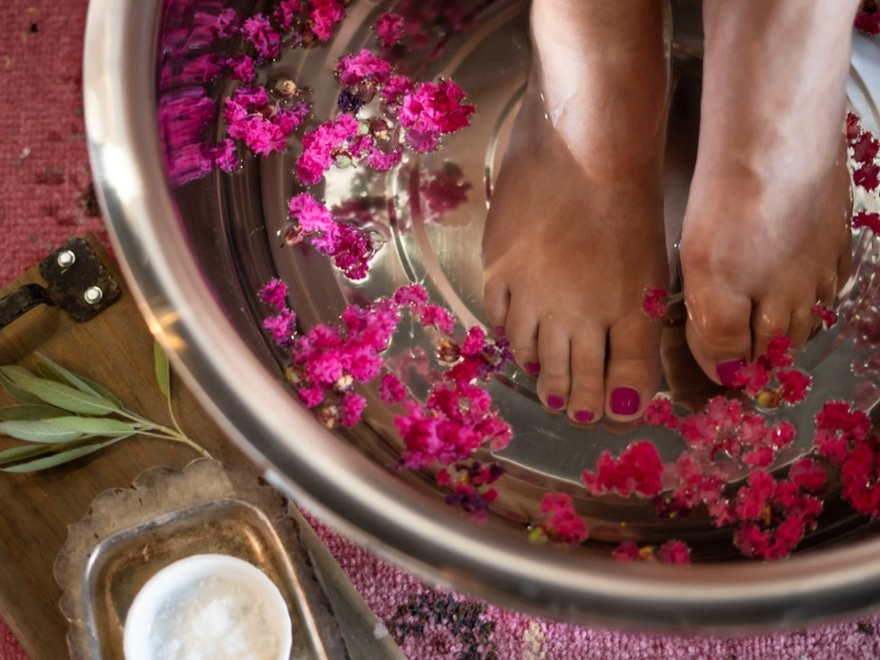 浄化マスクが顔に役立つのと同じように、足もこのディープクレンジング トリートメントで効果を得られます。ベントナイト クレイまたはカオリン クレイを同量の水とリンゴ酢と混ぜて、活性化フット マスクの滑らかなペーストを作ります。固有の抗菌特性を備え、粘土は毒素の除去に役立ちます。足をたっぷりマスクして、足の指の間以外をすべて覆います。マスクを10〜15分間乾燥させます。この間、粘土の魔法が働くため、わずかに締め付けられる感覚を感じることがあります。このトリートメントは足を清潔にし、臭いを軽減し、肌を非常に清潔にして若返らせます。マスクが乾いた後、足を優しく軽くたたいて乾燥させます。新しいタオルを使用し、温水で完全に洗い流してください。
