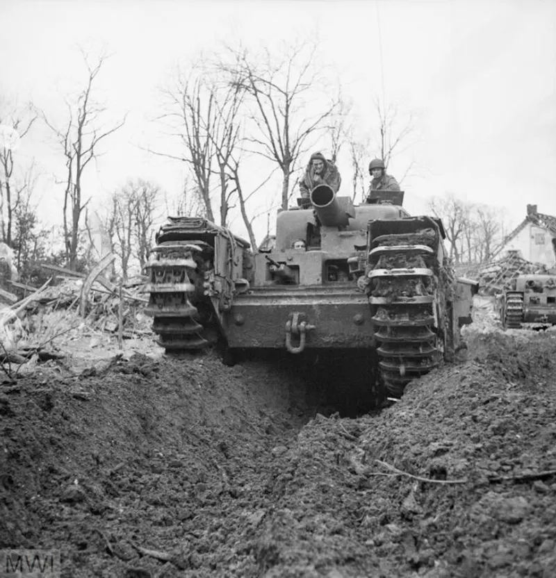 チャーチルAVREは、ただの戦車ではなく、戦場での多様な工兵作業を可能にするために設計されています。この車両には、状況に応じてさまざまな専用デバイスを取り付けることができ、特定の任務に対応する柔軟性を持っています。例えば、地雷原を除去するためのローラーやプラウ、障害物を押しのけるためのブルドーザー装置、橋を架けるための橋梁装置などが追加装備として利用可能です。これにより、AVREは戦場での進軍を妨げる多くの障害を迅速に取り除くことができました。